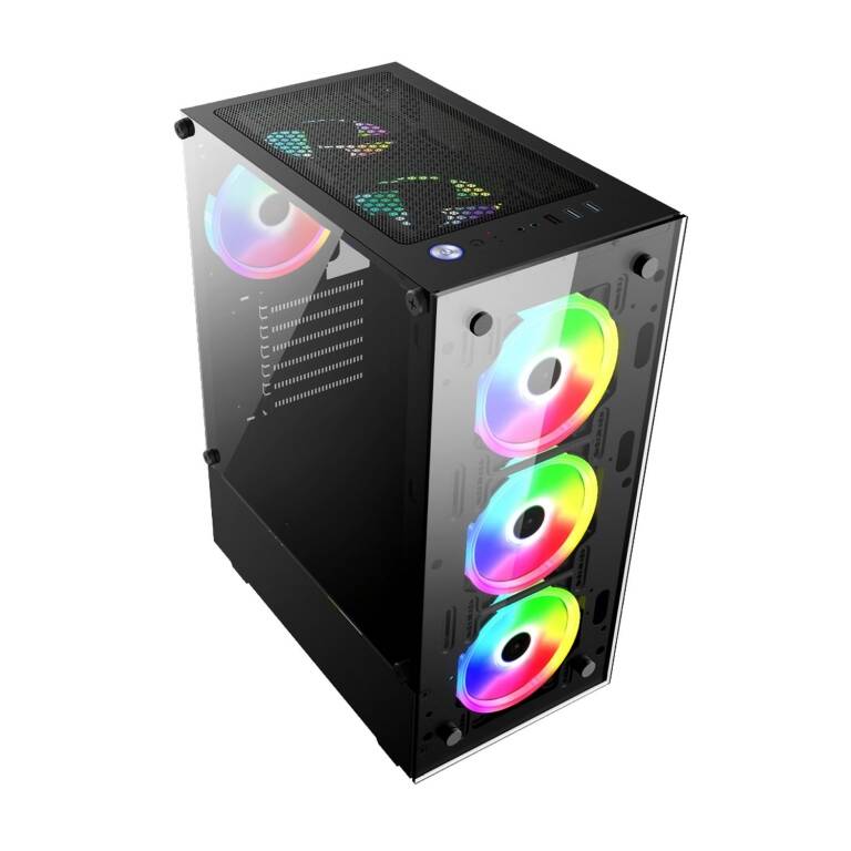Gabinete Gamer Sharkoon Rgb Wave 4 Fanes 120mm 4 Puertos Vidrio Templado