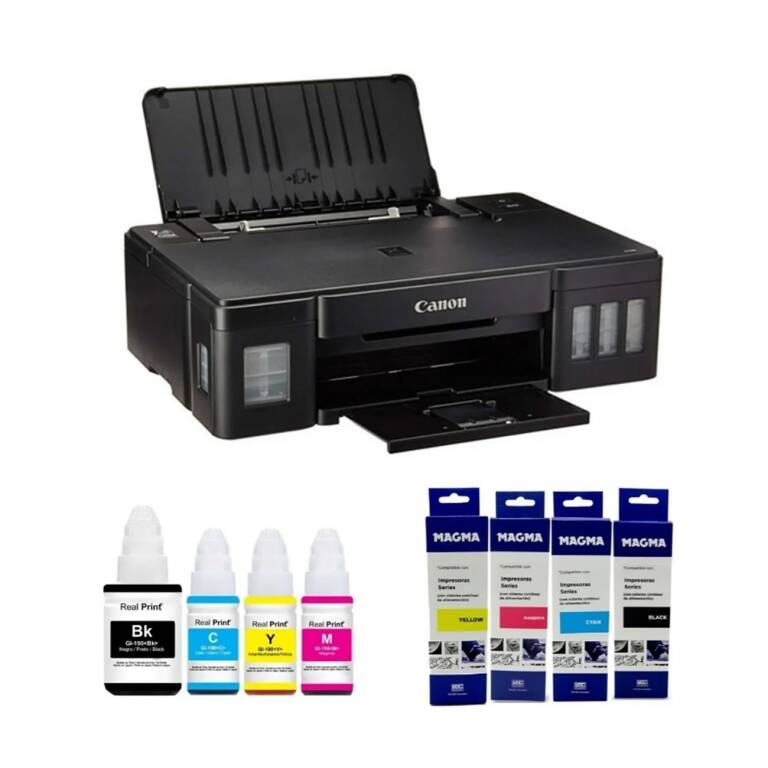 Incluye 1 botella de tinta negra y 3 botellas a color.
